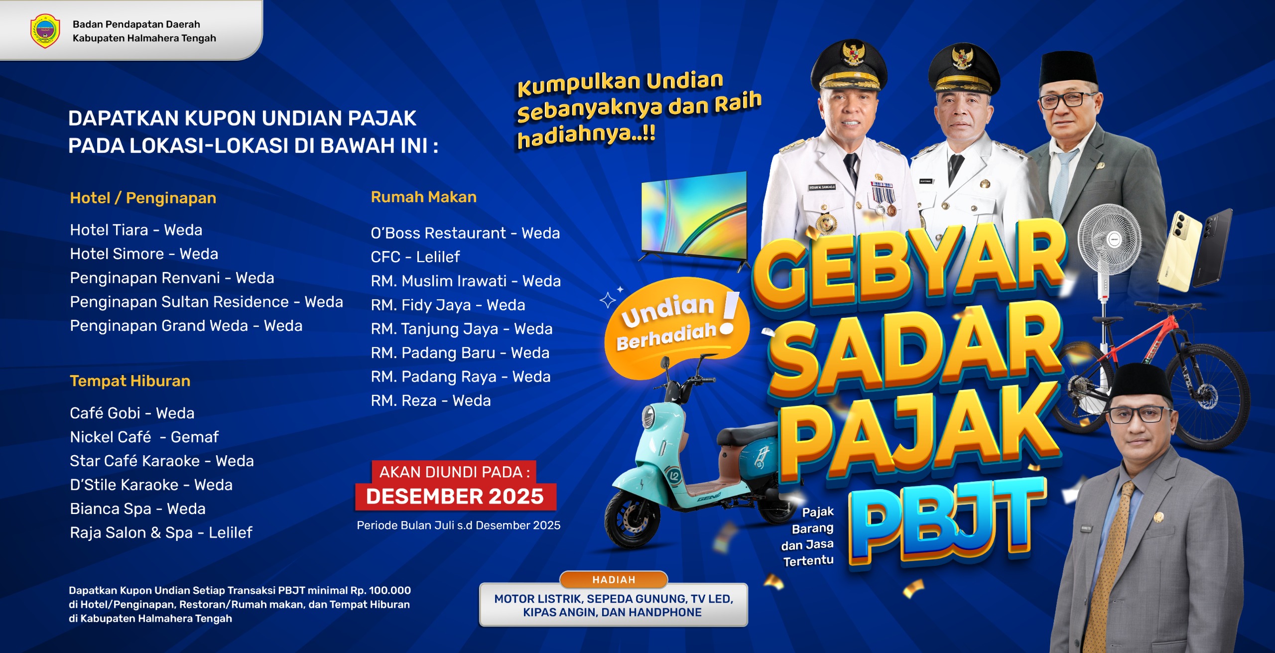 – Peserta adalah masyarakat umum yang melakukan transaksi dan berpartisipasi membayar pajak daerah Kabupaten Halmahera Tengah.