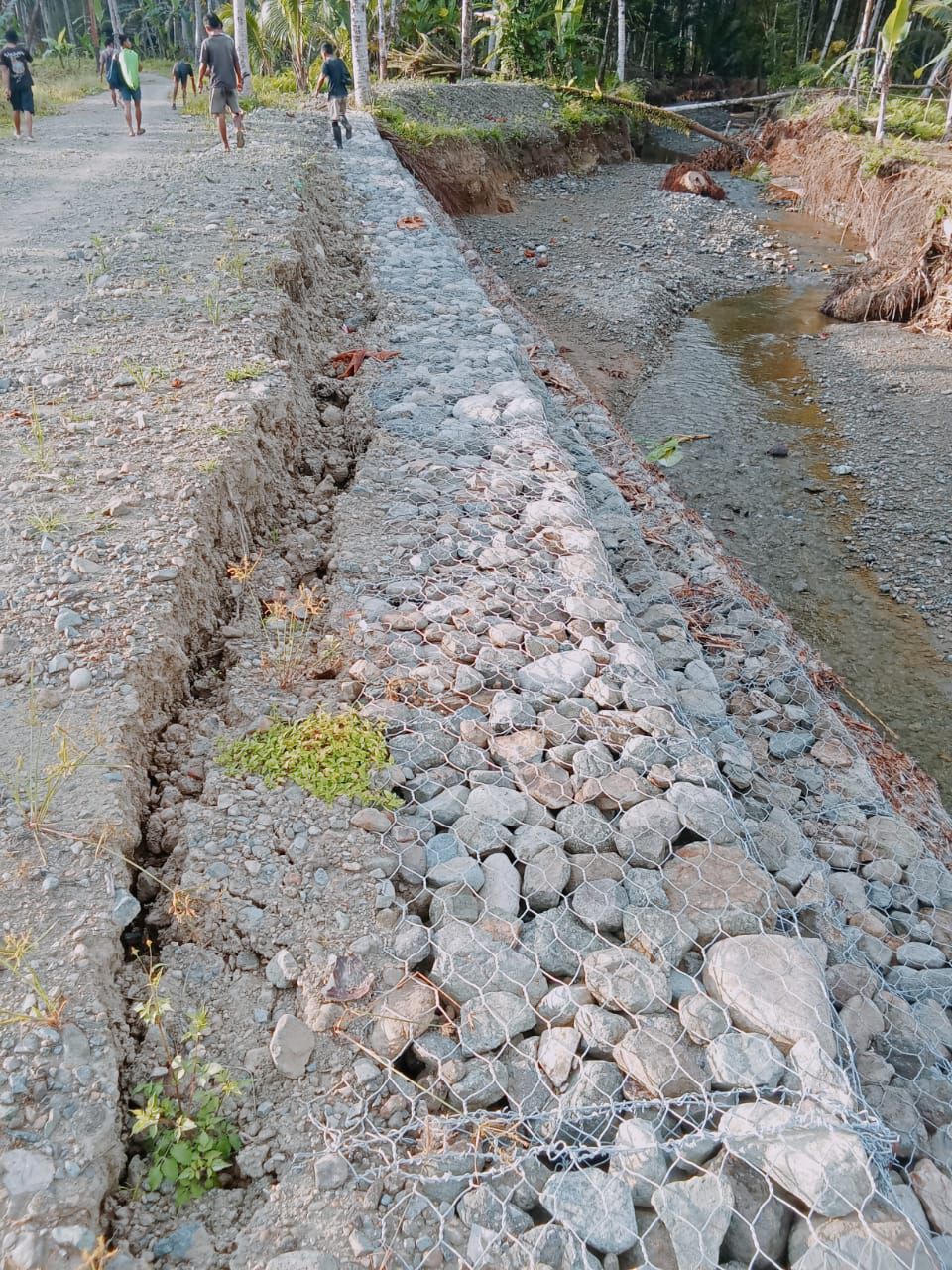 Hasil pantauan di lokasi menunjukkan bahwa bagian-bagian bronjong telah mulai menggeser dan mengalami keretakan. Kondisi ini membuat masyarakat desa khawatir akan munculnya banjir besar yang merendam rumah warga ketika musim hujan tiba.