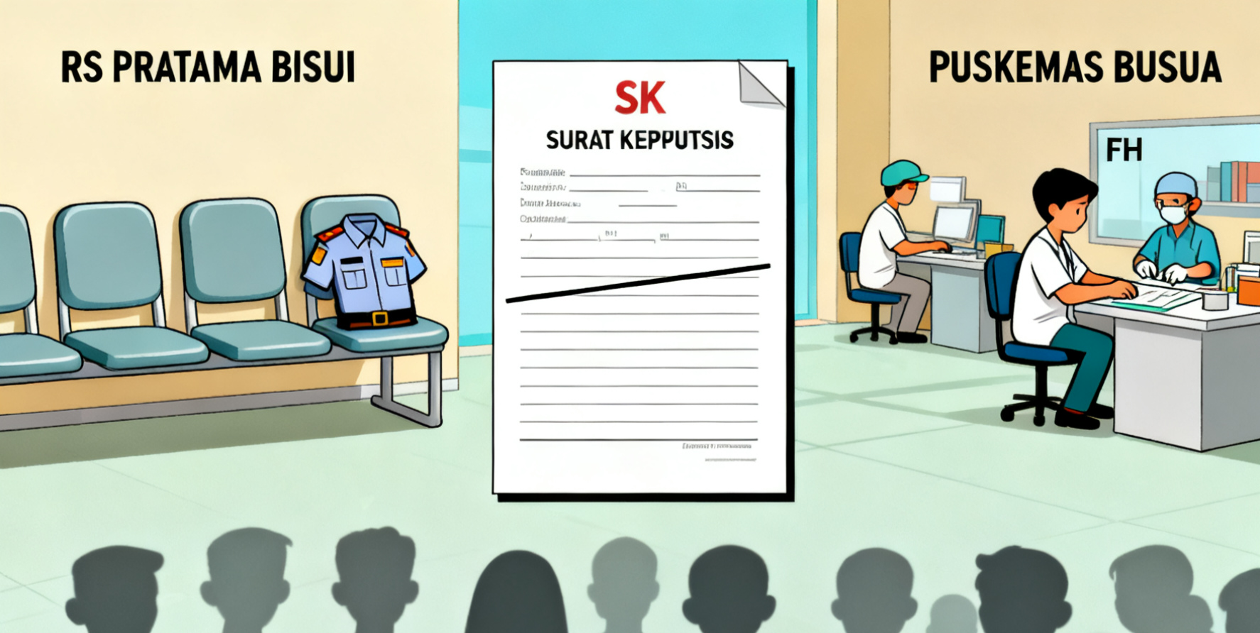 Berdasarkan informasi yang dihimpun, FH diketahui memilih formasi di RS Pratama Bisui saat mengikuti seleksi PPPK. Namun, fakta di lapangan justru bertolak belakang. FH dilaporkan berada dan beraktivitas di Puskesmas (PKM) Busua, padahal Surat Keputusan (SK) penempatannya secara tegas tercatat di RS Pratama Bisui.